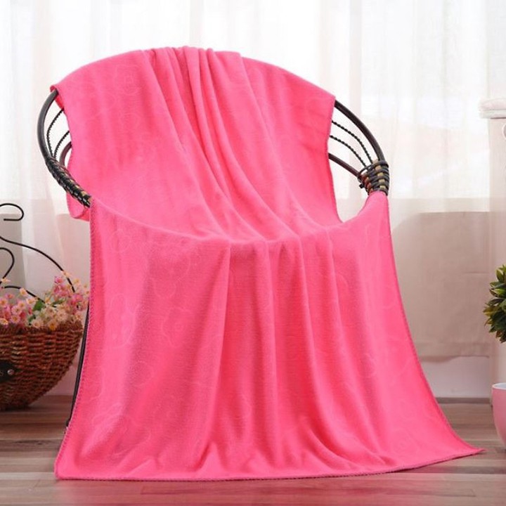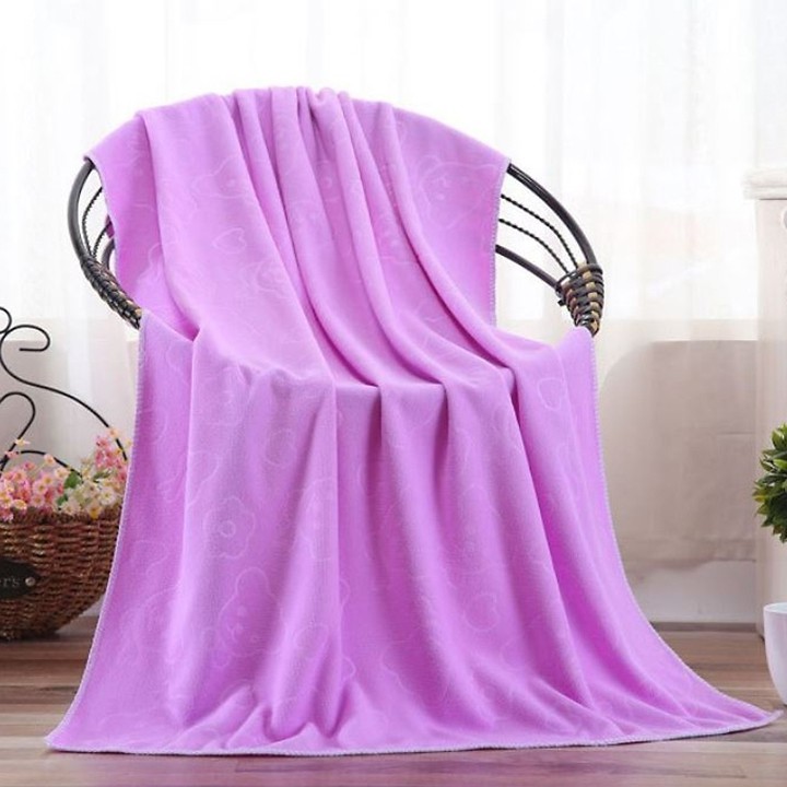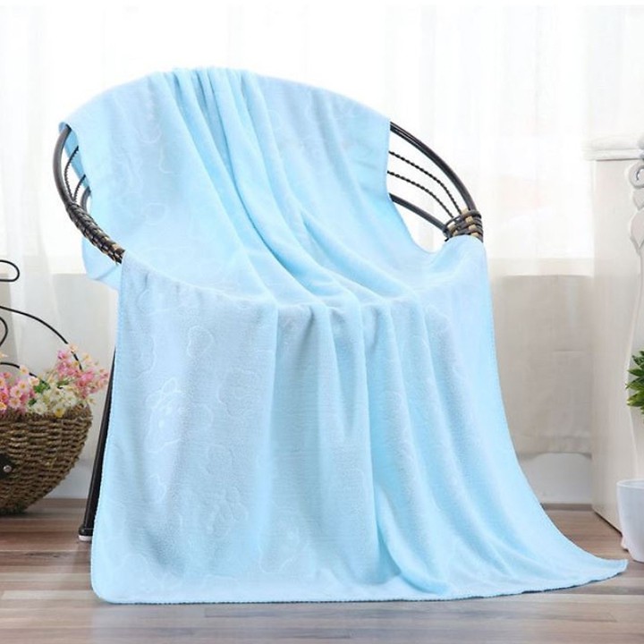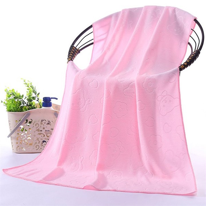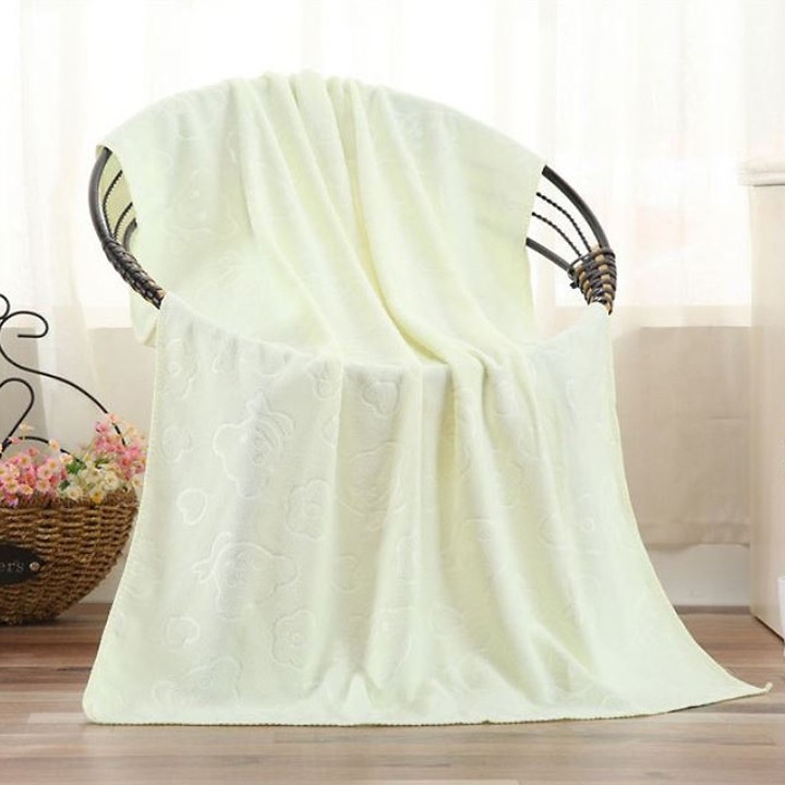 - Ưu điểm lớn nhất của sản phẩm chính là khăn tắm được thiết kế khổ lớn tiện dụng cho bạn sử dụng vào mục đích khác như ủ ấm cho trẻ, choàng… Đồng thời, sản phẩm được làm từ chất liệu sợi siêu mịn tự nhiên cao cấp mềm, mịn, không xổ lông, hút ẩm tốt, nhanh khô.