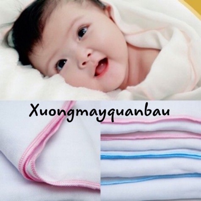 Sản phẩm có 2 màu để mẹ lựa chọn cho bé: Khăn màu trắng kết hợp với viền xanh và viền hồng, tạo điểm nhấn bắt mắt cho sản phẩm.