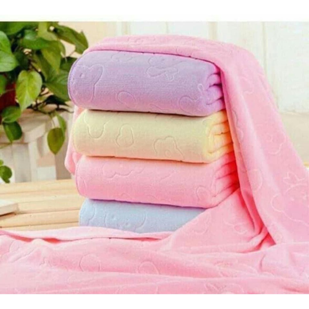 Khăn tắm xuất nhật siêu mềm mịn khổ lớn 70x140cm- Khăn dược in hoa văn nổi hình gấu xinh lắm nhé!