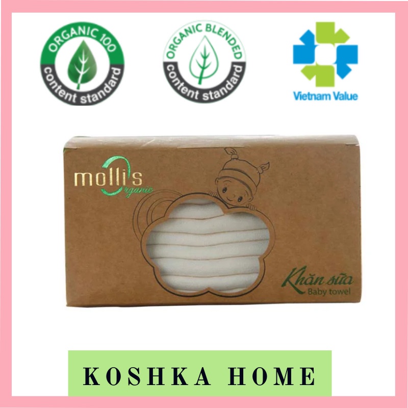 Giới thiệu Bộ khăn tay sữa trẻ em cao cấp Mollis Organic (10 khăn kích thước 30x30)