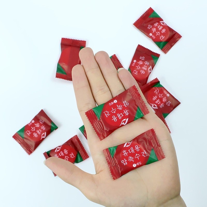 - Khăn mặt được nén dưới dạng viên kẹo nhỏ gọn, tiện lợi khi mang theo ra ngoài hoặc đi du lịch. Đóng túi từng viên đảm bảo vệ sinh