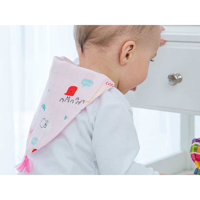 - Sản phẩm khăn Muslin gồm 1 khăn được thiết kế với khổ rộng 23*32 cm và phần thiết kế để ra bên ngoài với hình tam giác nhiều hình ngộ nghĩnh giúp giữ được phần bên trong không bị rơi lại tạo vẻ đẹp và cá tính cho bé yêu.