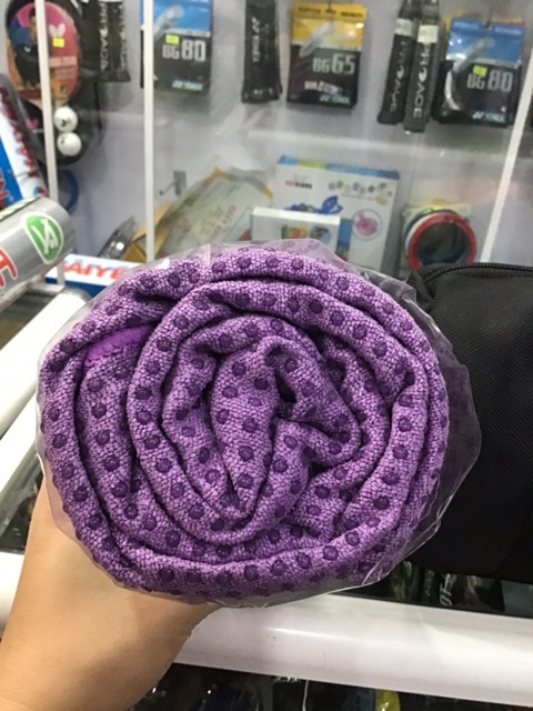 Đối với các bạn cơ địa ra nhiều mồ hôi thì đây là sản phẩm không thể thiếu trong việc tập yoga nhé.Khăn trải thảm yoga với chất liệu cotton thấm hút cực tốt, hạt silicone mềm giữ cho đôi tay và chân bạn không bị trơn trượt vì ra nhiều mồ hôi