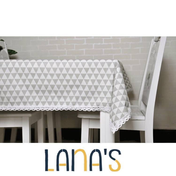 Nhà cửa & Đời sống > Trang trí nhà cửa > Khăn trải bàn || Khăn Trải Bàn Họa Tiết Tam Giác Xám Viền RenCòn hàng