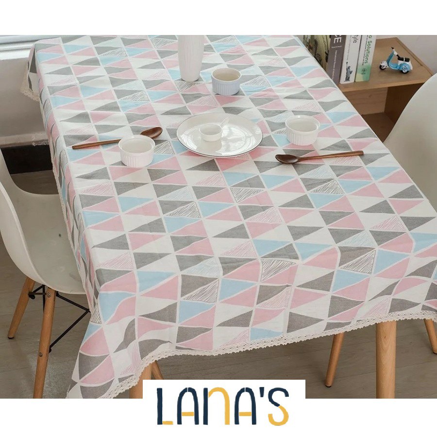 "LANA'S STORE nhận may khăn trải bàn, đồ decor họa tiết theo theo yêu cầu"KHĂN TRẢI BÀN VẢI BỐ CANVAS DECOR HỌA TIẾT TAM GIÁC HỒNG