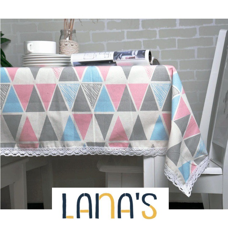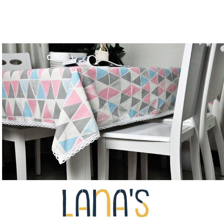 Nhà cửa & Đời sống > Trang trí nhà cửa > Khăn trải bàn || Khăn Trải Bàn Họa Tiết Tam Giác Hồng Viền RenCòn hàng