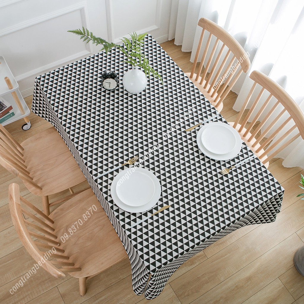 Giới thiệu Khăn Trải Bàn, PHÔNG chụp ảnh, Vải Canvas Họa Tiết Tam Giác Hồng - Phong cách bắc âu nhiều kích thước ( Có may viền )