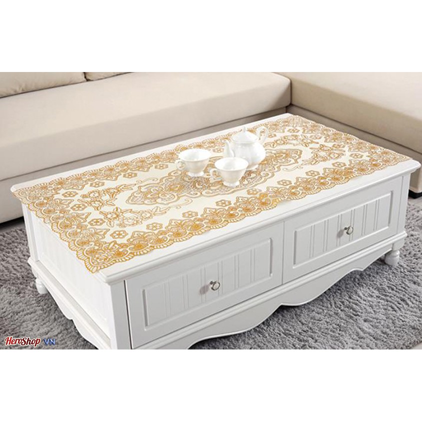 Thông tin chi tiết sản phẩm:Tên sản phẩm: Khăn Trải Bàn Ăn 70x1m2 Nhũ Vàng Chống Thấm Sang Trọng