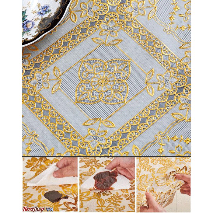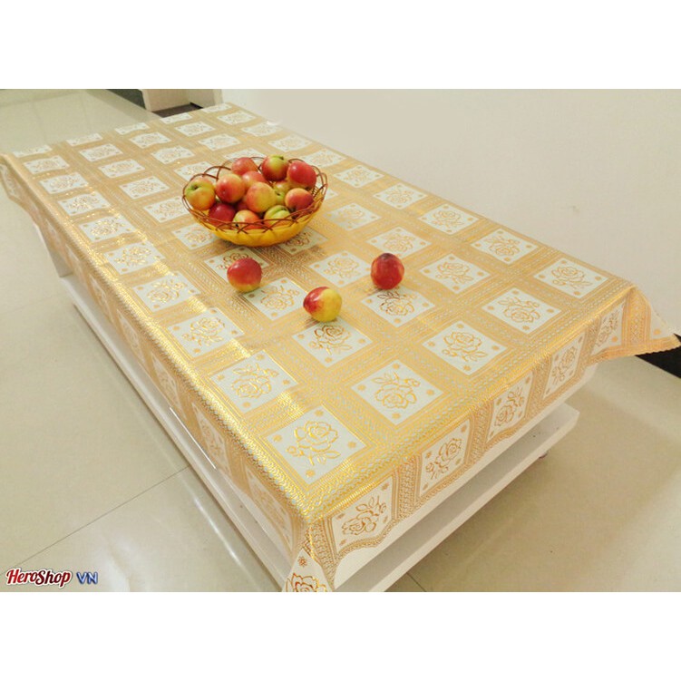 Thông tin chi tiết sản phẩm:Tên sản phẩm:Khăn Trải Bàn Ăn Nhũ Vàng-Trắng Chống Thấm Sang Trọng ( 70x1m4)