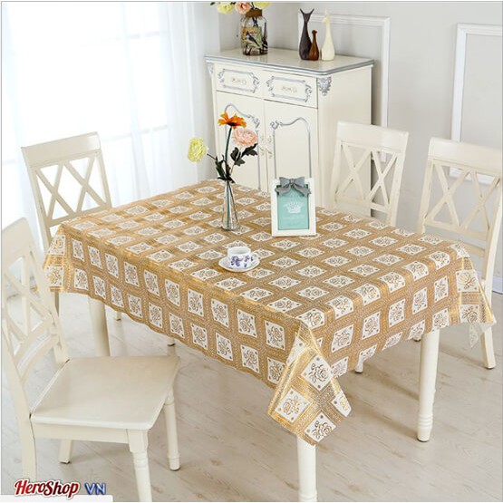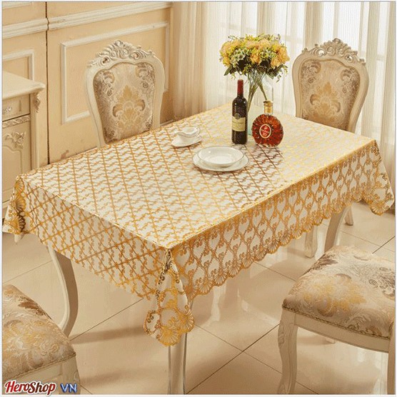 Thông tin chi tiết sản phẩm:Tên sản phẩm:Khăn Trải Bàn Ăn Nhũ Vàng-Trắng Chống Thấm Sang Trọng ( 80x1m4)