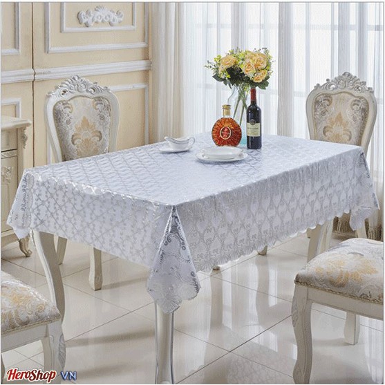 Giới thiệu Khăn Trải Bàn Ăn Nhũ Vàng-Trắng 1m4 x 1m8 Chống Thấm Sang Trọng