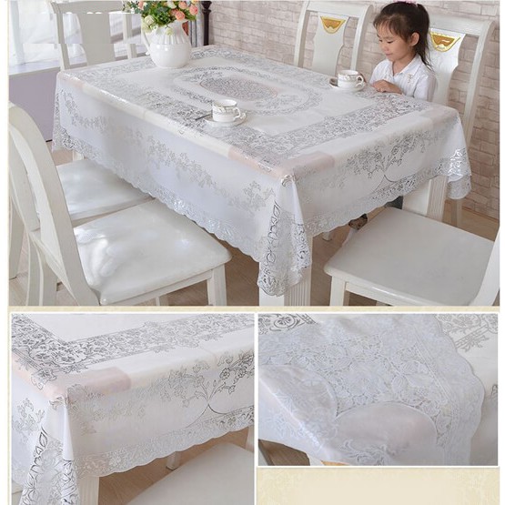 Khăn Trải Bàn Ăn Nhũ Vàng-Trắng 1m4 x 1m8 Chống Thấm Sang Trọng