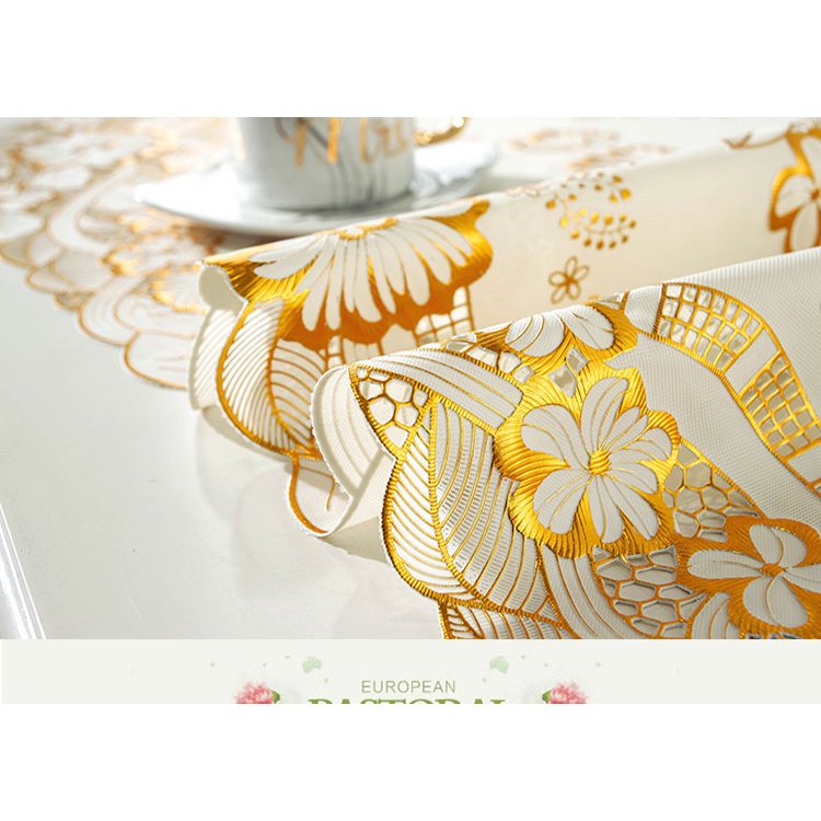 Khăn Trải Bàn Ăn Viền Vàng Hoa Ren 110x50cm