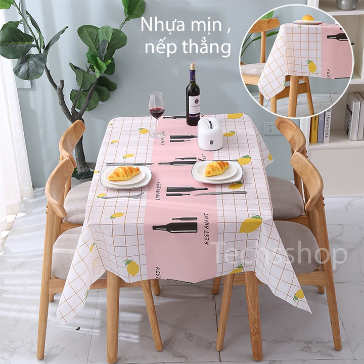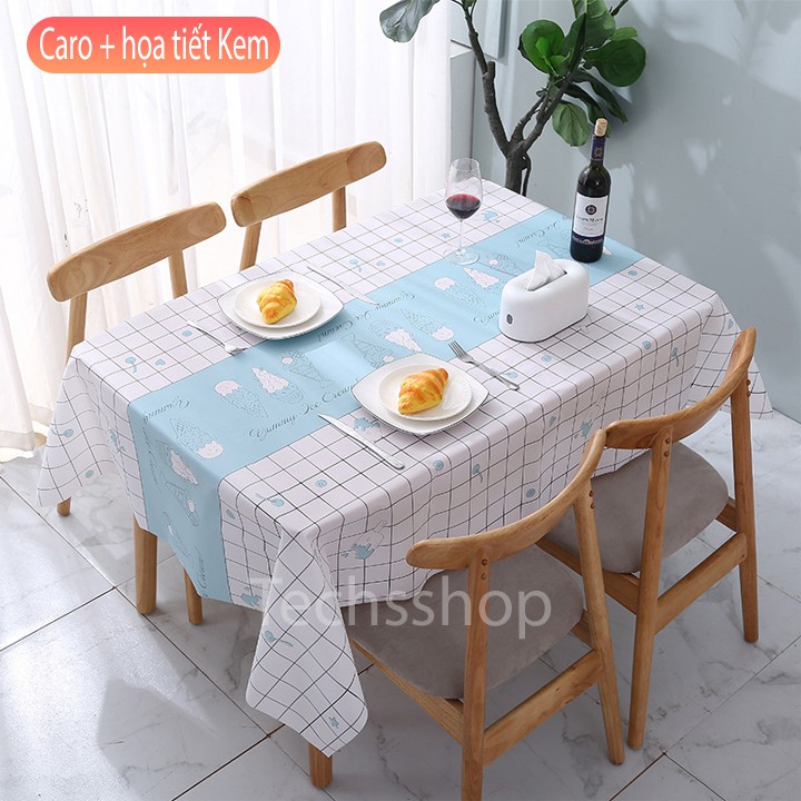 Khăn Trải Bàn Bằng Nhựa PEVA Hình Caro Họa Tiết - Tấm Lót Bàn Hình Chữ Nhật 180x137cm