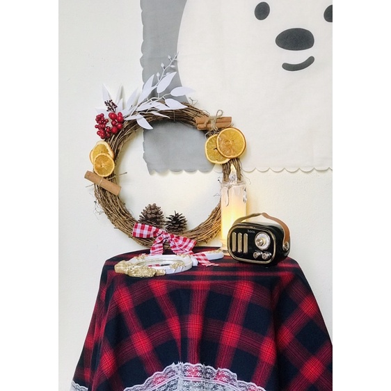 Giới thiệu Khăn Trải Bàn Caro Trang Trí Noel Giáng Sinh Viền Ren