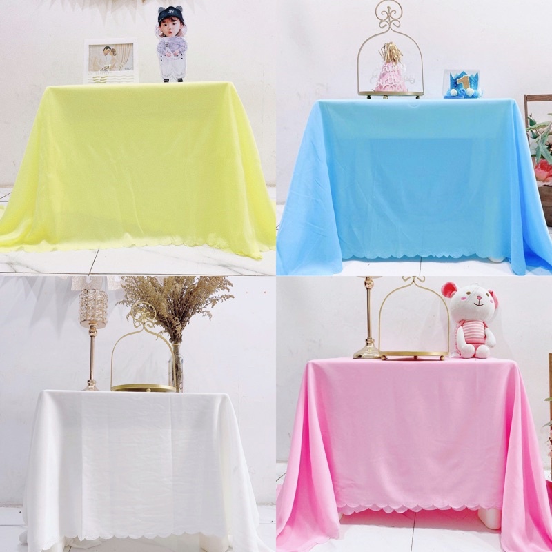 Khăn trải bàn chất liệu vải thun viền cánh hoa văn trang trí sinh nhật