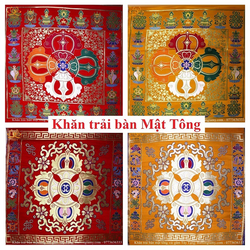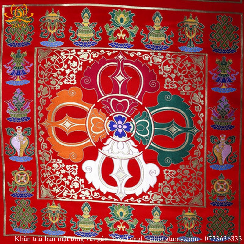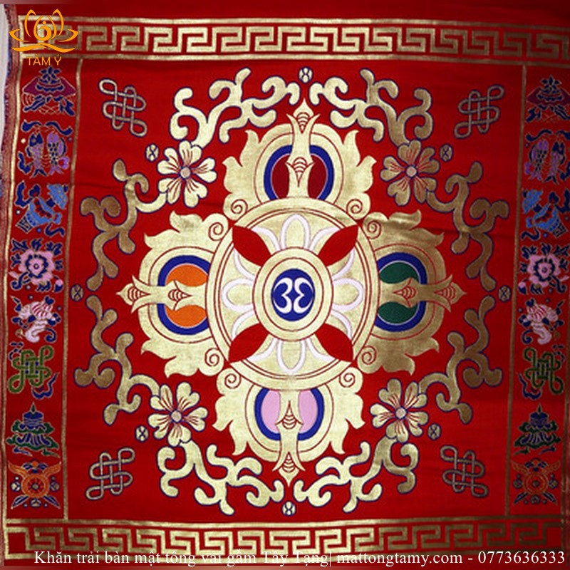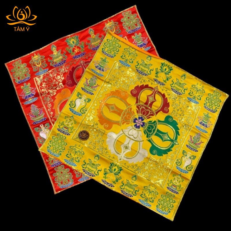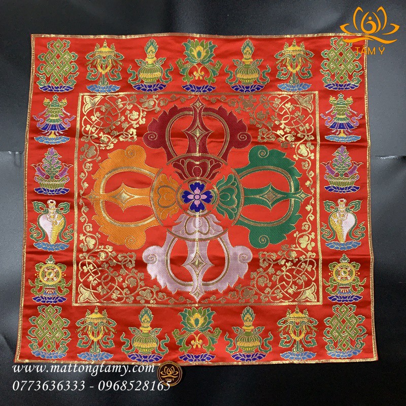 Khăn Trải Bàn Chày Kim Cang Mật Tông Vải Gấm Thủ Công Tây Tạng 68x68cm ảnh thật
