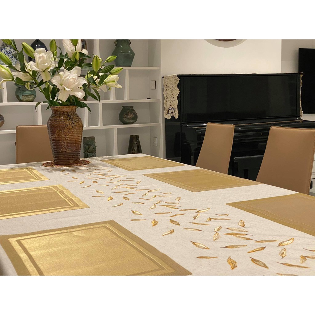 Khăn trải bàn đẹp Landecor mẫu thêu lá vàng sang trọng - TB470