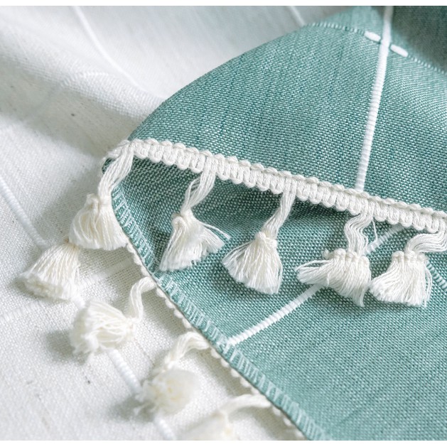 Khăn trải bàn đẹp Landecor mẫu ô vuông nhỏ nền trắng sọc xanh bắt mắt - TB442