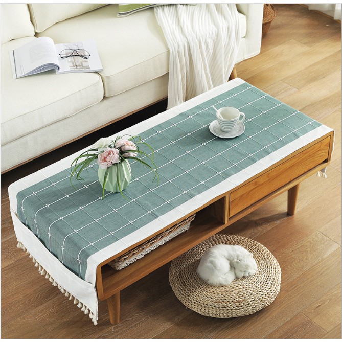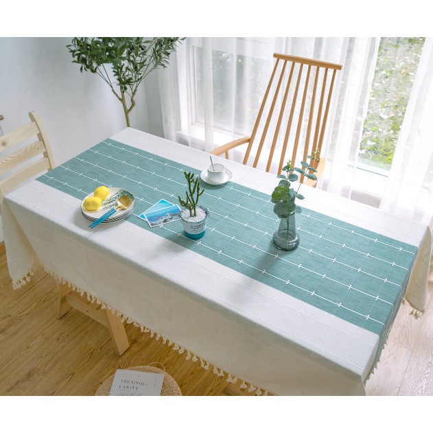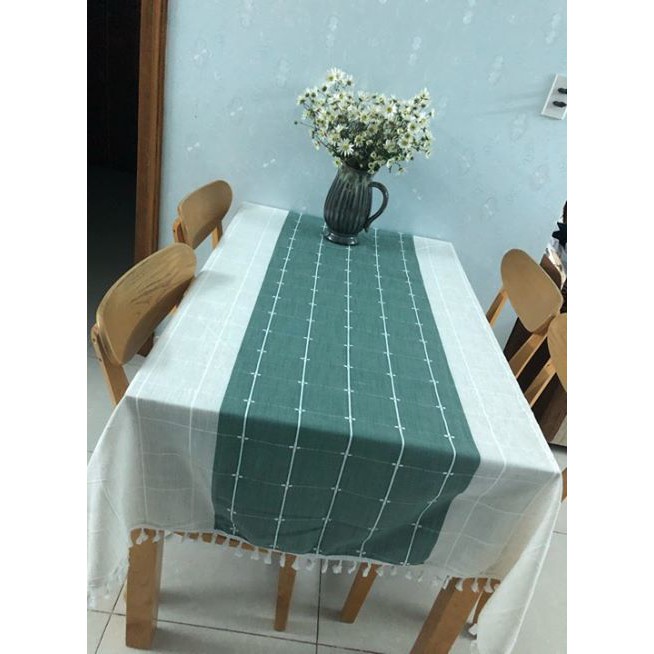 Nhà cửa & Đời sống > Trang trí nhà cửa > Khăn trải bàn || Khăn trải bàn đẹp Landecor mẫu ô vuông nhỏ nền trắng sọc xanh bắt mắt - TB442Còn hàng