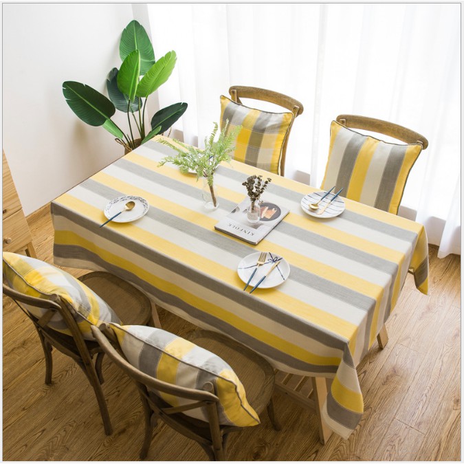 Khăn trải bàn đẹp Landecor mẫu sọc vàng xám sang trọng - TB327