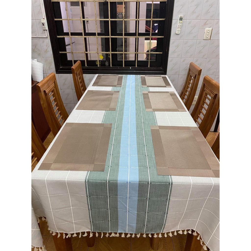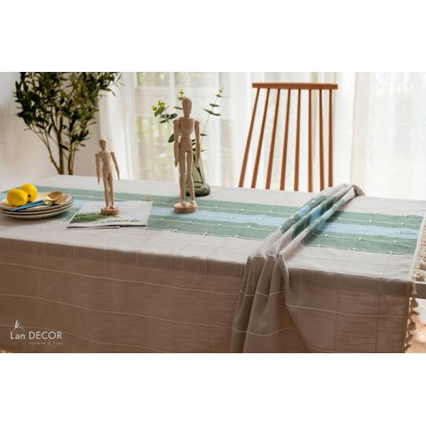 Nhà cửa & Đời sống > Trang trí nhà cửa > Khăn trải bàn || Khăn trải bàn đẹp Landecor mẫu ô vuông nhỏ sọc giữa xanh dương sang trọng- TB458Còn hàng