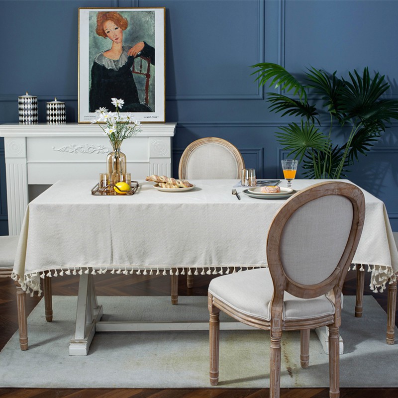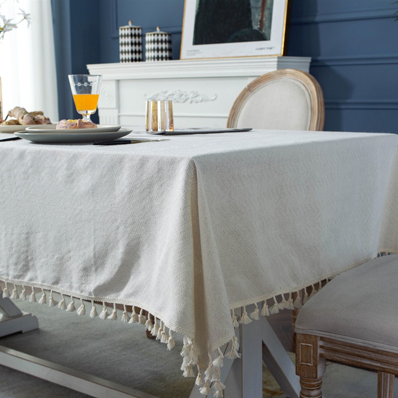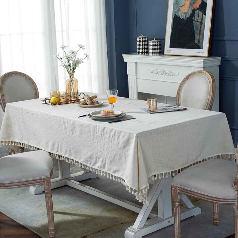 Nhà cửa & Đời sống > Trang trí nhà cửa > Khăn trải bàn || Khăn Trải Bàn Dệt Slub Jacquard Vải Cotton Viền Tua Rua Màu TrắngCòn hàng