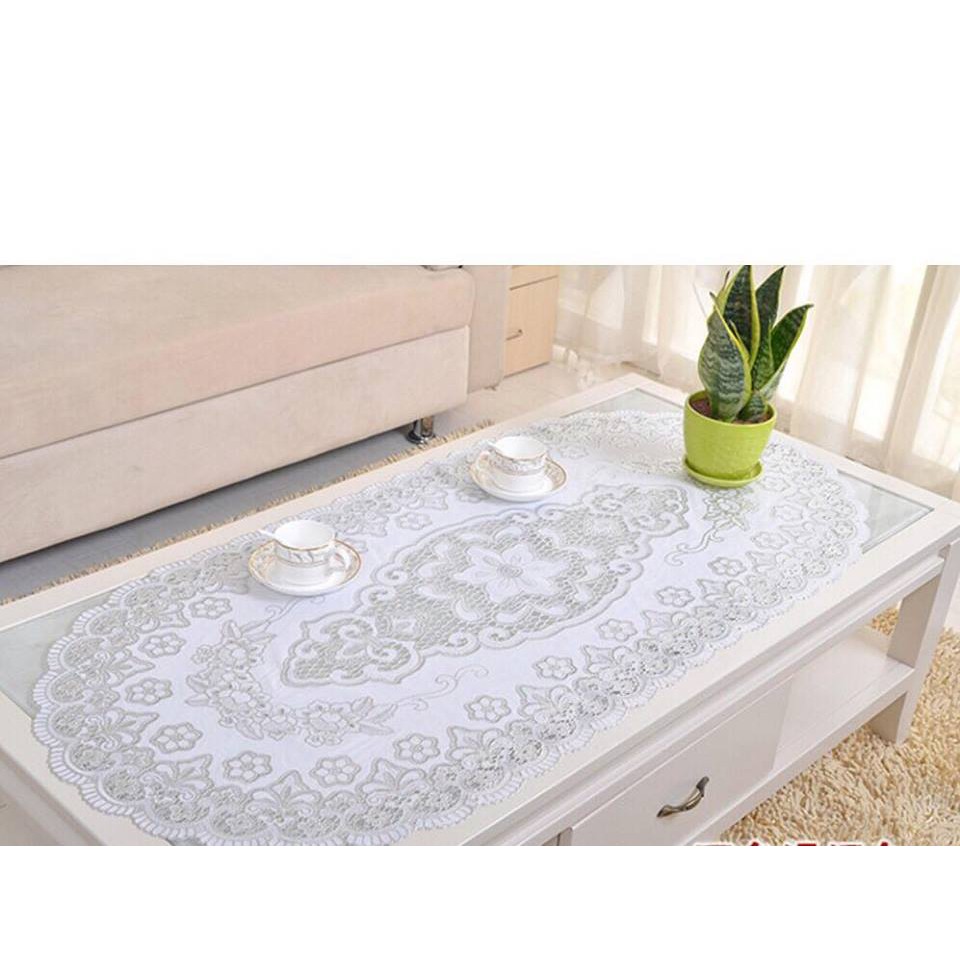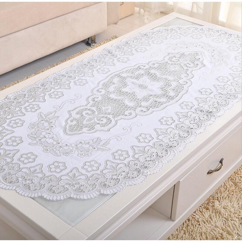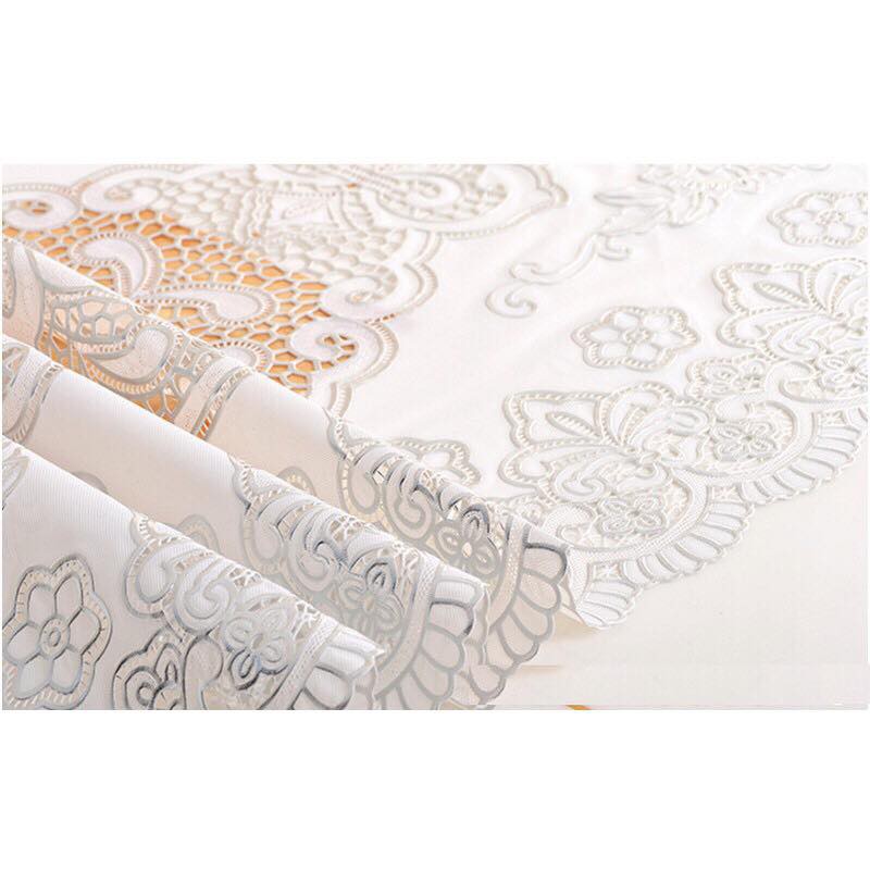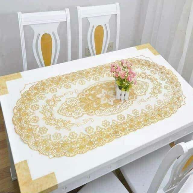 Khăn trải bàn hình oval dùng cho bàn mặt kính hoa văn nổi 3D sang trọng cỡ lớn 60x120cm (màu vàng)