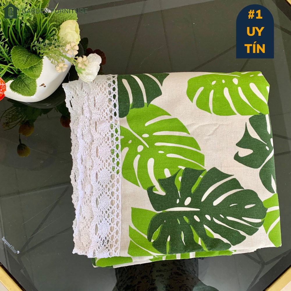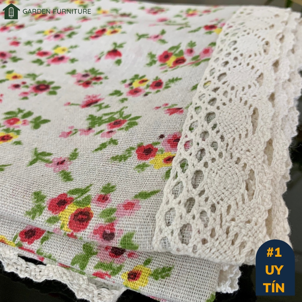 Khăn trải bàn hoa ren size lớn kích thước 1,5m x 2m, khăn trải bàn phòng khách hoa nhí trang trí vintage, vải bố Canvas