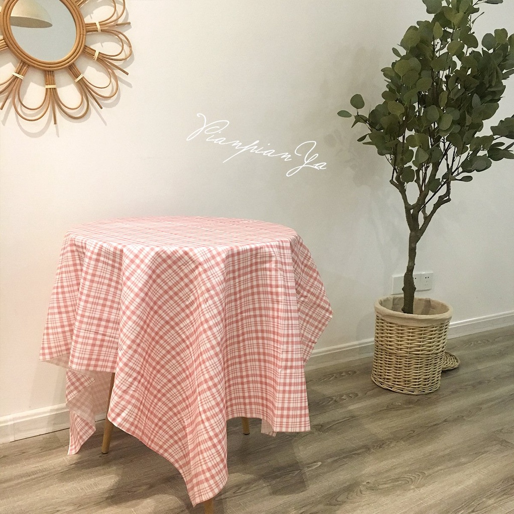 Khăn trải bàn họa tiết caro phủ nhung Vải chống thấm nước Decor trang trí nhà cửa