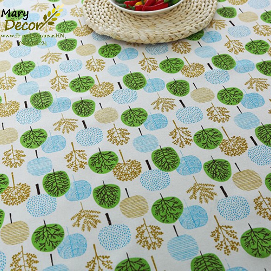 Khăn trải bàn Họa tiết Cây tròn màu sắc viền ren (đủ kích thước) - F09