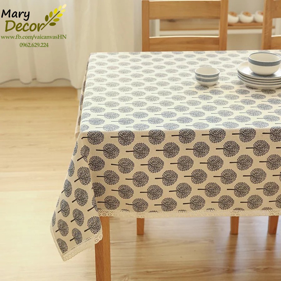 Giới thiệu Khăn trải bàn Họa tiết cây viền ren (đủ kích thước) - D09