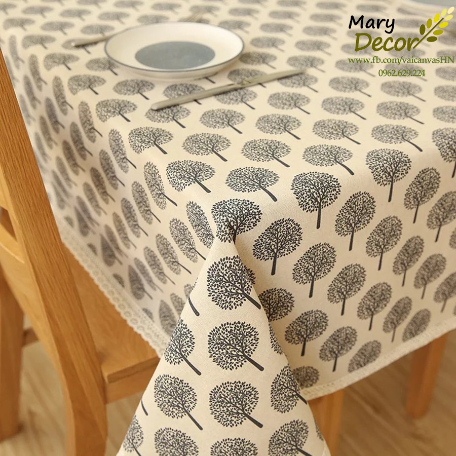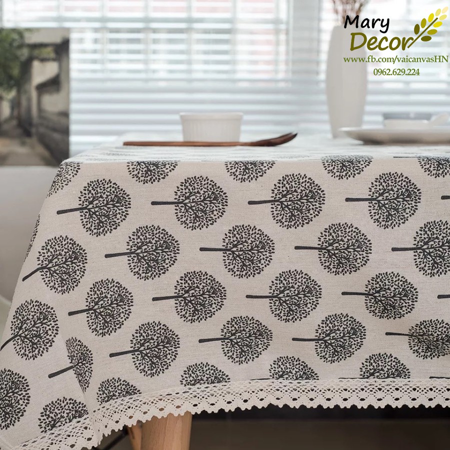 Khăn trải bàn Họa tiết cây viền ren (đủ kích thước) - D09