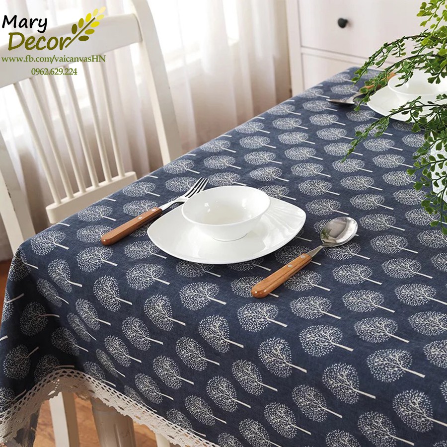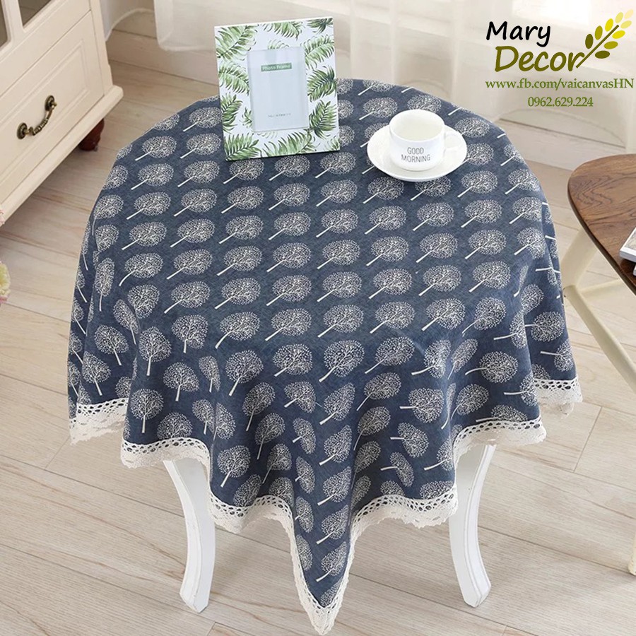 Khăn trải bàn Họa tiết cây xám viền ren (đủ kích thước) -A06