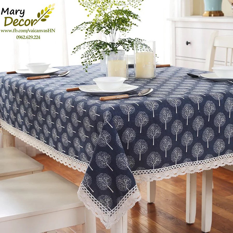 Giới thiệu Khăn trải bàn Họa tiết cây xám viền ren (đủ kích thước) -A06