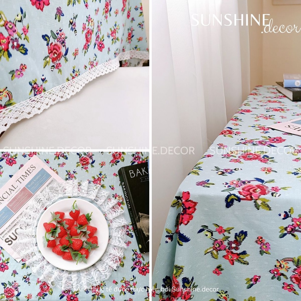Giới thiệu Khăn trải bàn họa tiết hoa hồng Vintage viền ren xinh xắn trang trí phòng khách, phòng ngủ