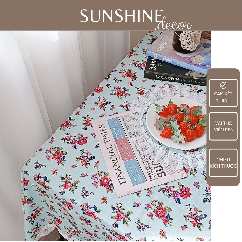 Nhà cửa & Đời sống > Trang trí nhà cửa > Khăn trải bàn || Khăn trải bàn họa tiết hoa hồng Vintage viền ren xinh xắn trang trí phòng khách, phòng ngủCòn hàng