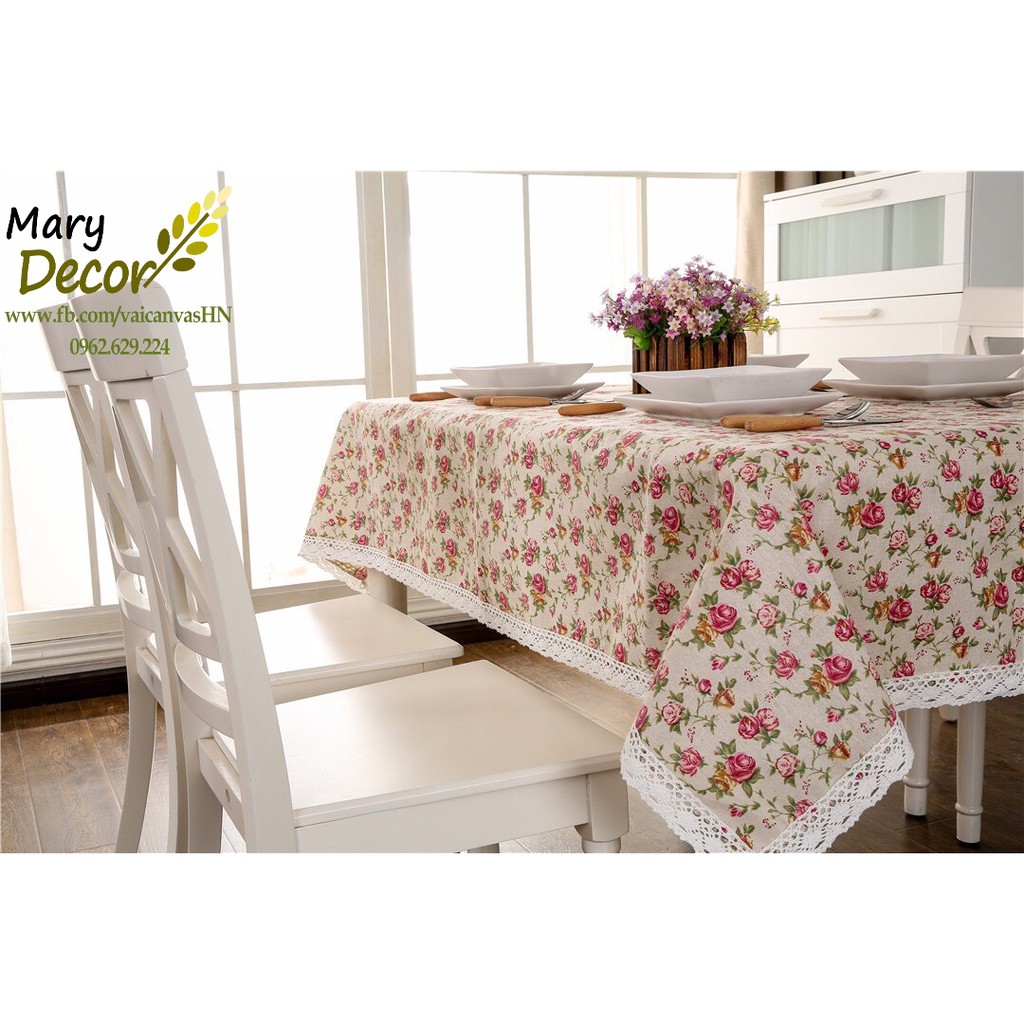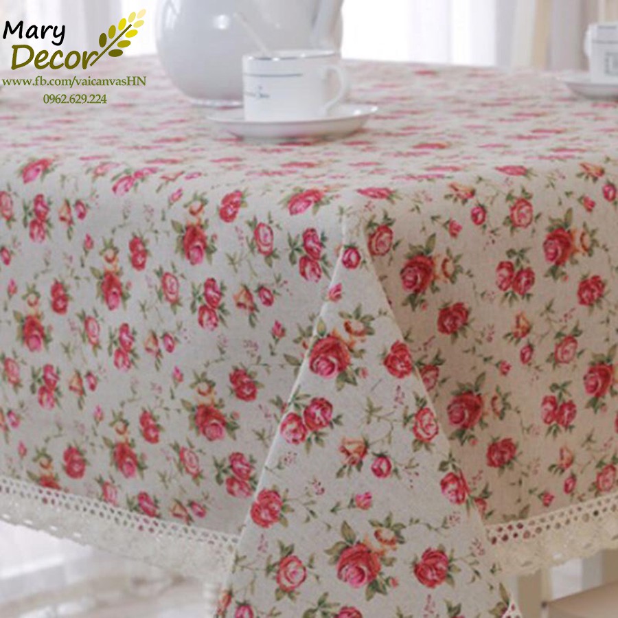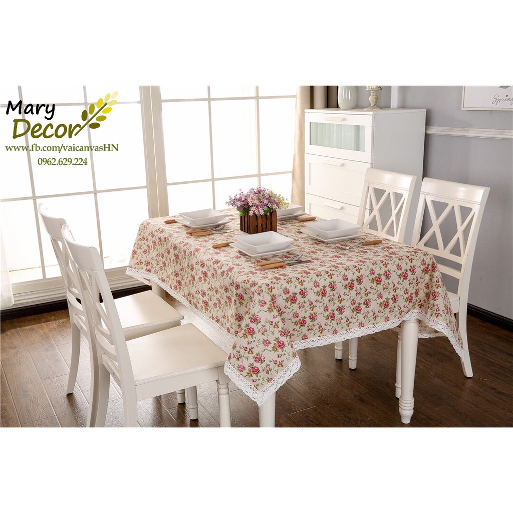 Giới thiệu Khăn trải bàn Họa tiết Họa tiết Hoa hồng nhí viền ren (đủ kích thước) - G04