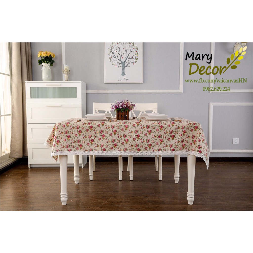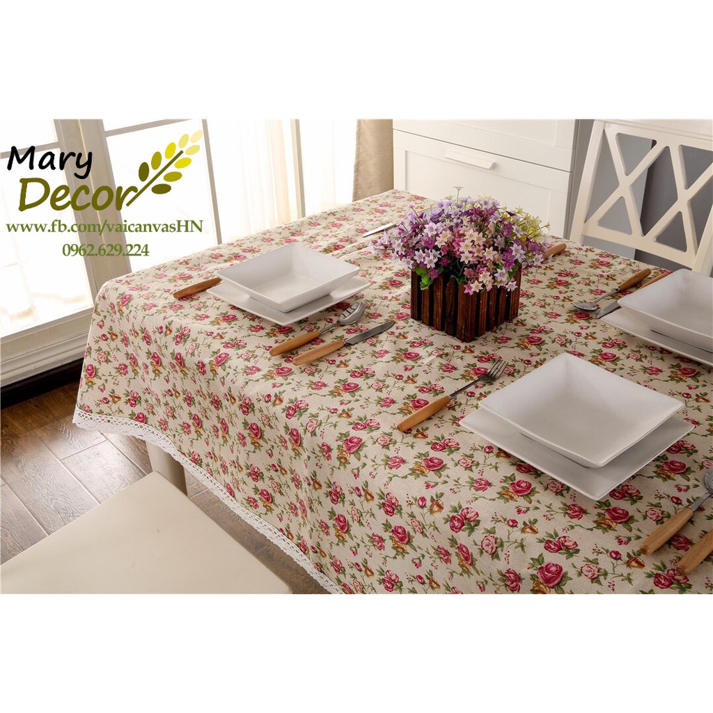 Nhà cửa & Đời sống > Trang trí nhà cửa > Khăn trải bàn || Khăn trải bàn Họa tiết Họa tiết Hoa hồng nhí viền ren (đủ kích thước) - G04Còn hàng