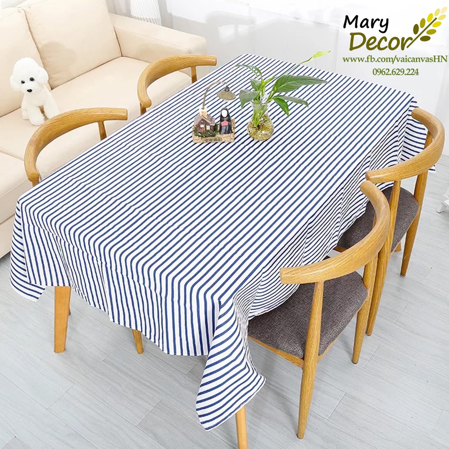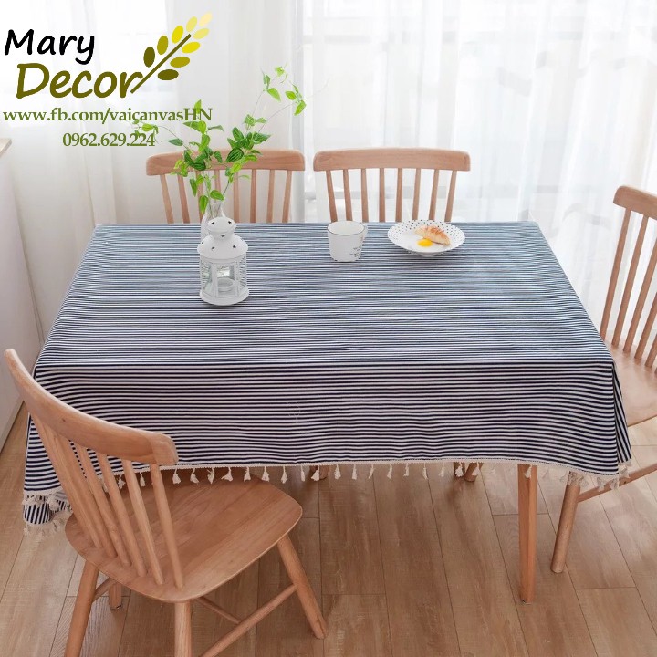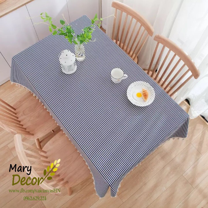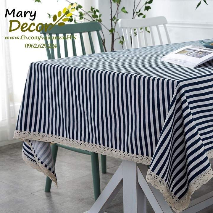 Giới thiệu Khăn trải bàn Họa tiết Họa tiết Sọc xanh to viền ren (đủ kích thước) - I07