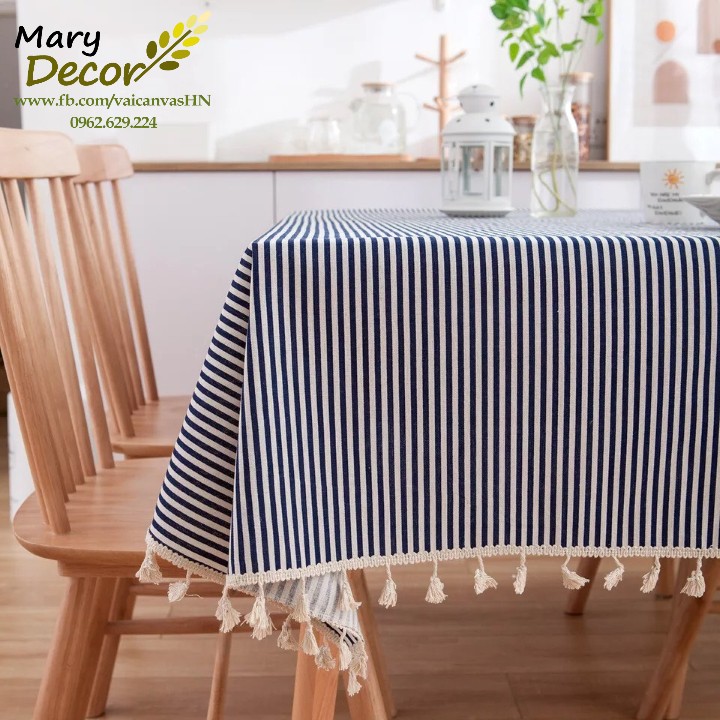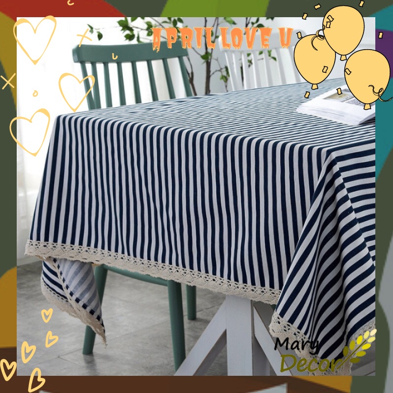 Nhà cửa & Đời sống > Trang trí nhà cửa > Khăn trải bàn || Khăn trải bàn Họa tiết Họa tiết Sọc xanh to viền ren (đủ kích thước) - I07Còn hàng