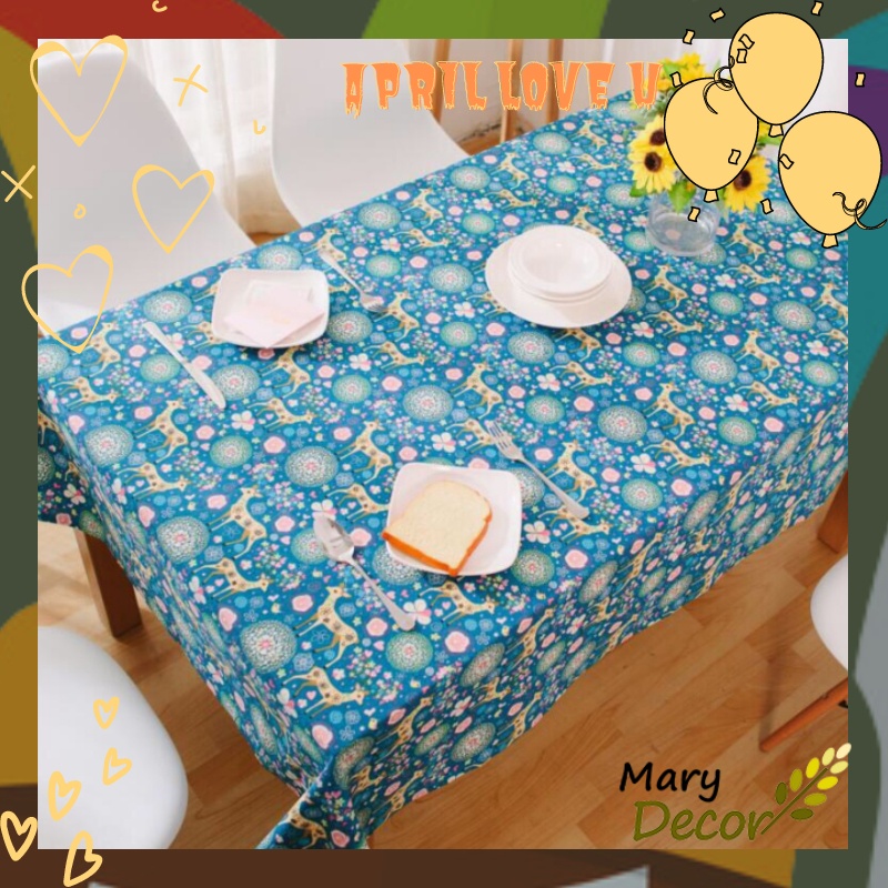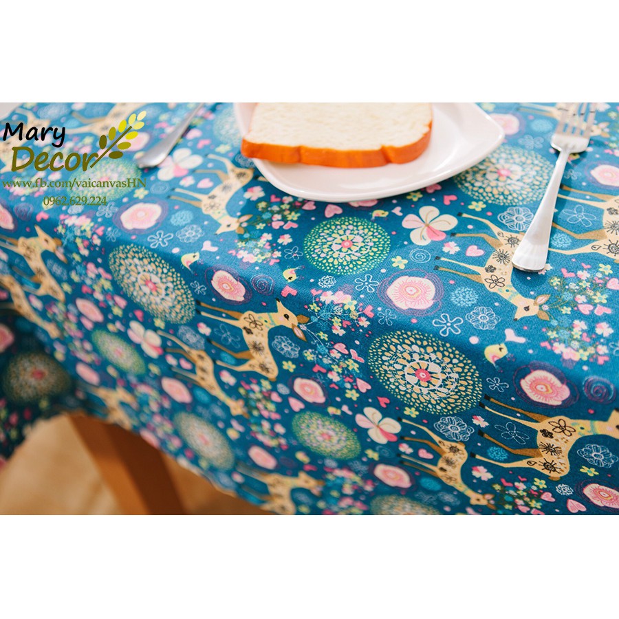 Nhà cửa & Đời sống > Trang trí nhà cửa > Khăn trải bàn || Khăn trải bàn Họa tiết Hươu sao xanh blue viền ren (đủ kích thước) - C08Còn hàng