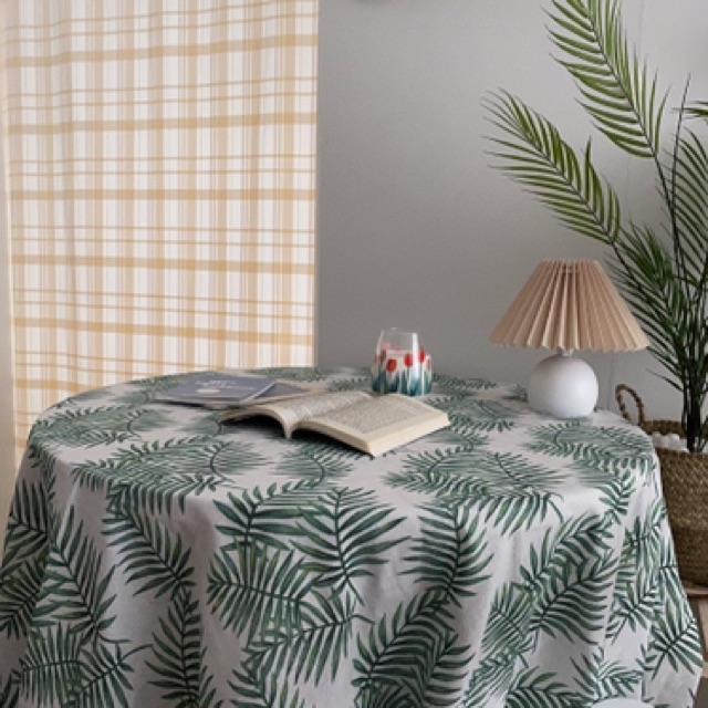 Khăn trải bàn Họa tiết Lá cọ kim viền ren (đủ kích thước) - B08