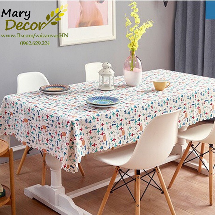 Khăn trải bàn Họa tiết Máy bay viền ren (đủ kích thước) - E06