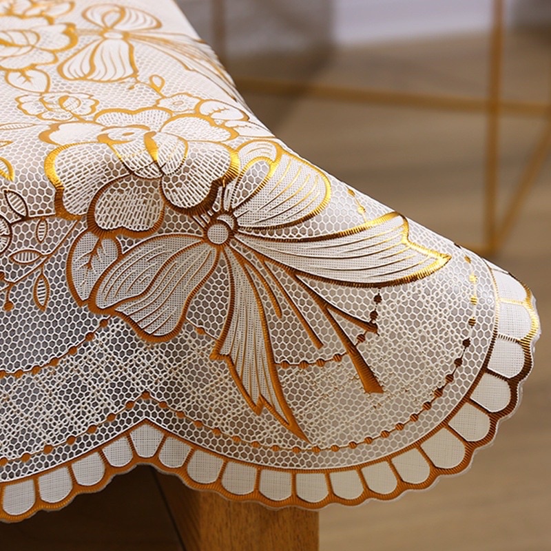 Khăn Trải Bàn Hoạ Tiết Ren Vàng Siêu Sang - Đẹp Nhất Mọi Thời Đại