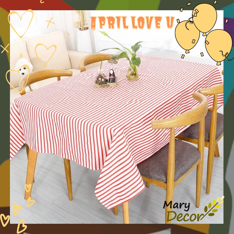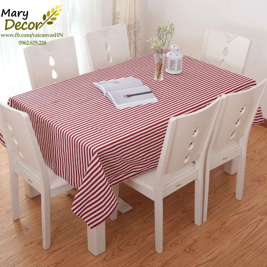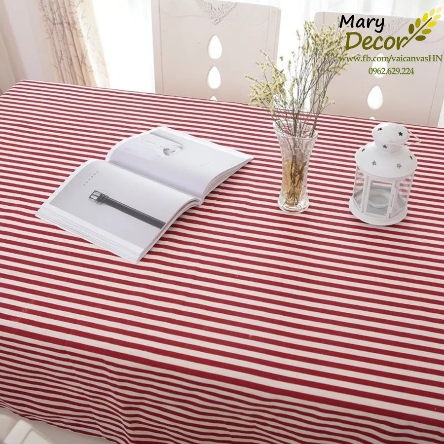 Nhà cửa & Đời sống > Trang trí nhà cửa > Khăn trải bàn || Khăn trải bàn Họa tiết Sọc đỏ trắng to viền ren (đủ kích thước) - I08Còn hàng