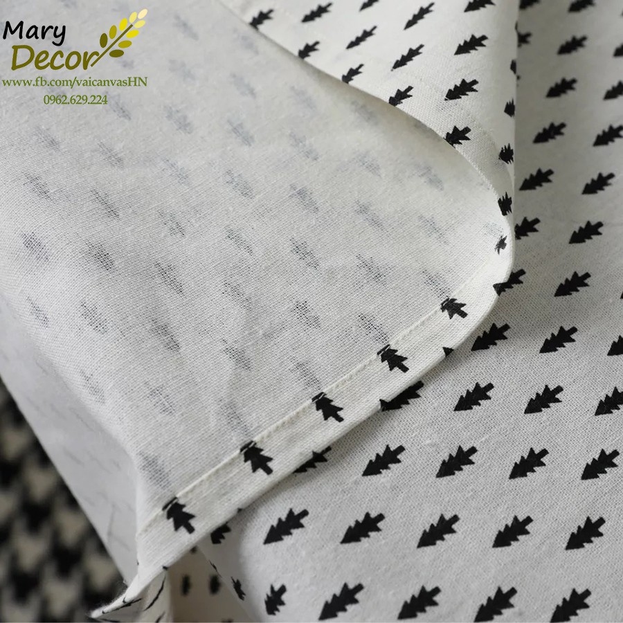 Khăn trải bàn Họa tiết Thông đen nền trắng viền ren (đủ kích thước) - D02
