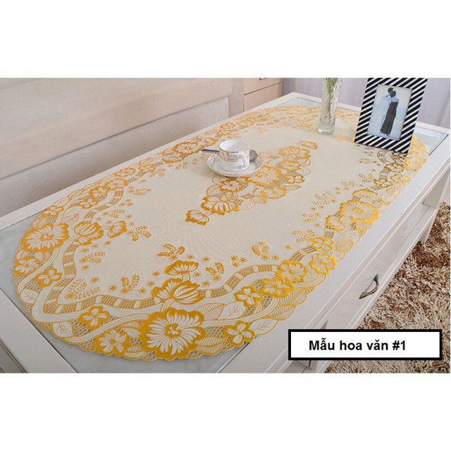 Giới thiệu Khăn Trải Bàn Hoa Văn Dập Nổi Màu Vàng,Trắng Sang Trọng
