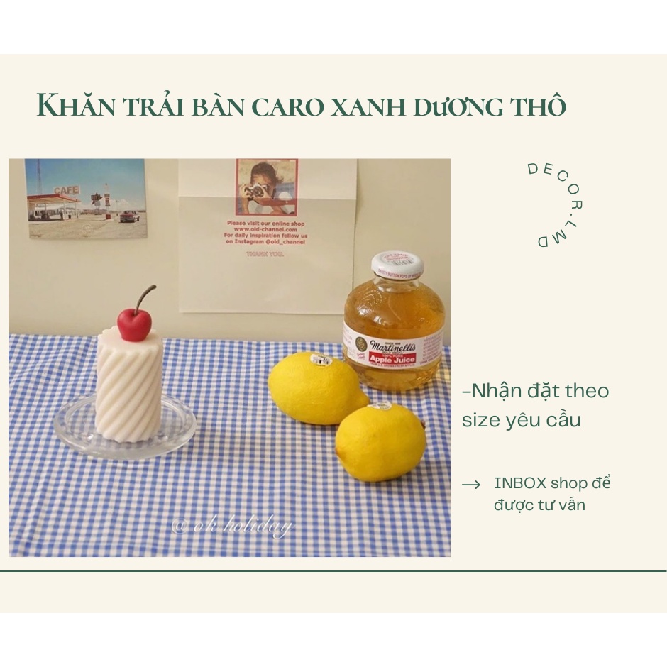 Phù hợp với căn phòng tone xanh trắngĐặt khăn trải bàn theo size yêu cầu bạn vui lòng trả lời giúp shop theo số thứ tự trên nhé: