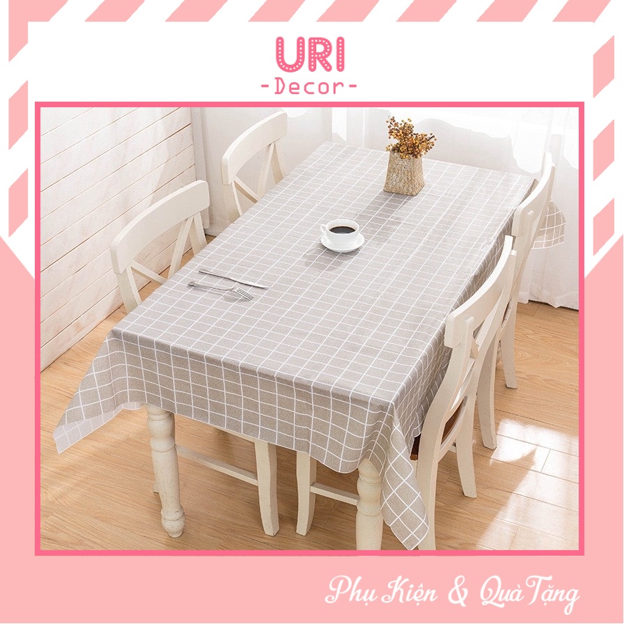 Khăn trải bàn kẻ caro nhựa PVC chống thấm nước, khăn phủ bàn vintage decor phông nền phòng khách bàn trà URI DECOR